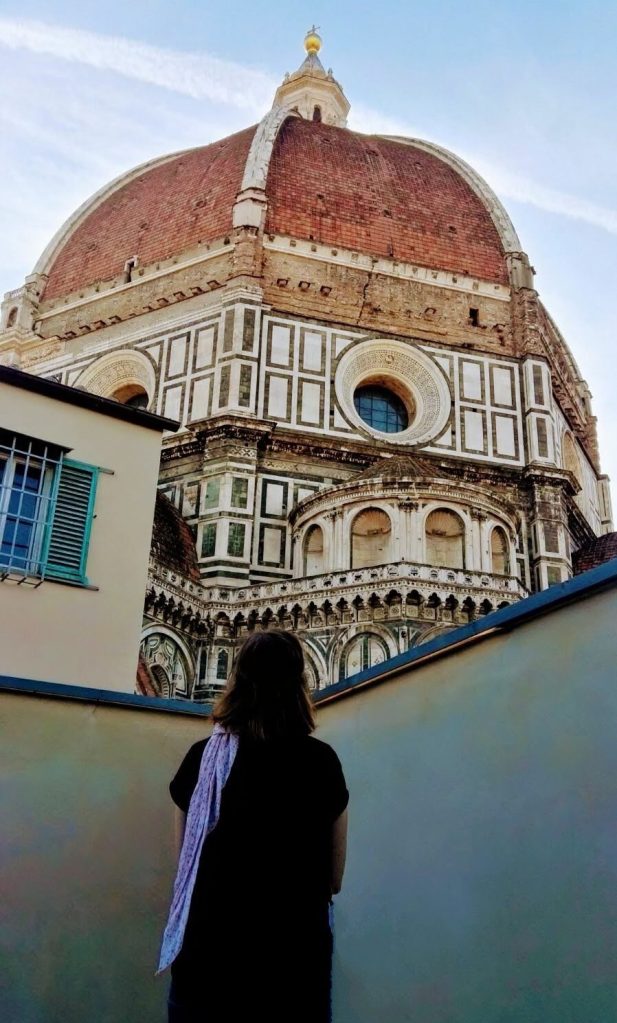 Ed è là, sulla Terrazza brunelleschiana del terzo piano che il mio amore per Firenze è riaffiorato con potenza. Là, di fronte a quella Cupola che sembra tanto vicina da poter essere toccata, da poter essere abbracciata, mi sono commossa con il cuore colmo di orgoglio per le mie origini toscane.